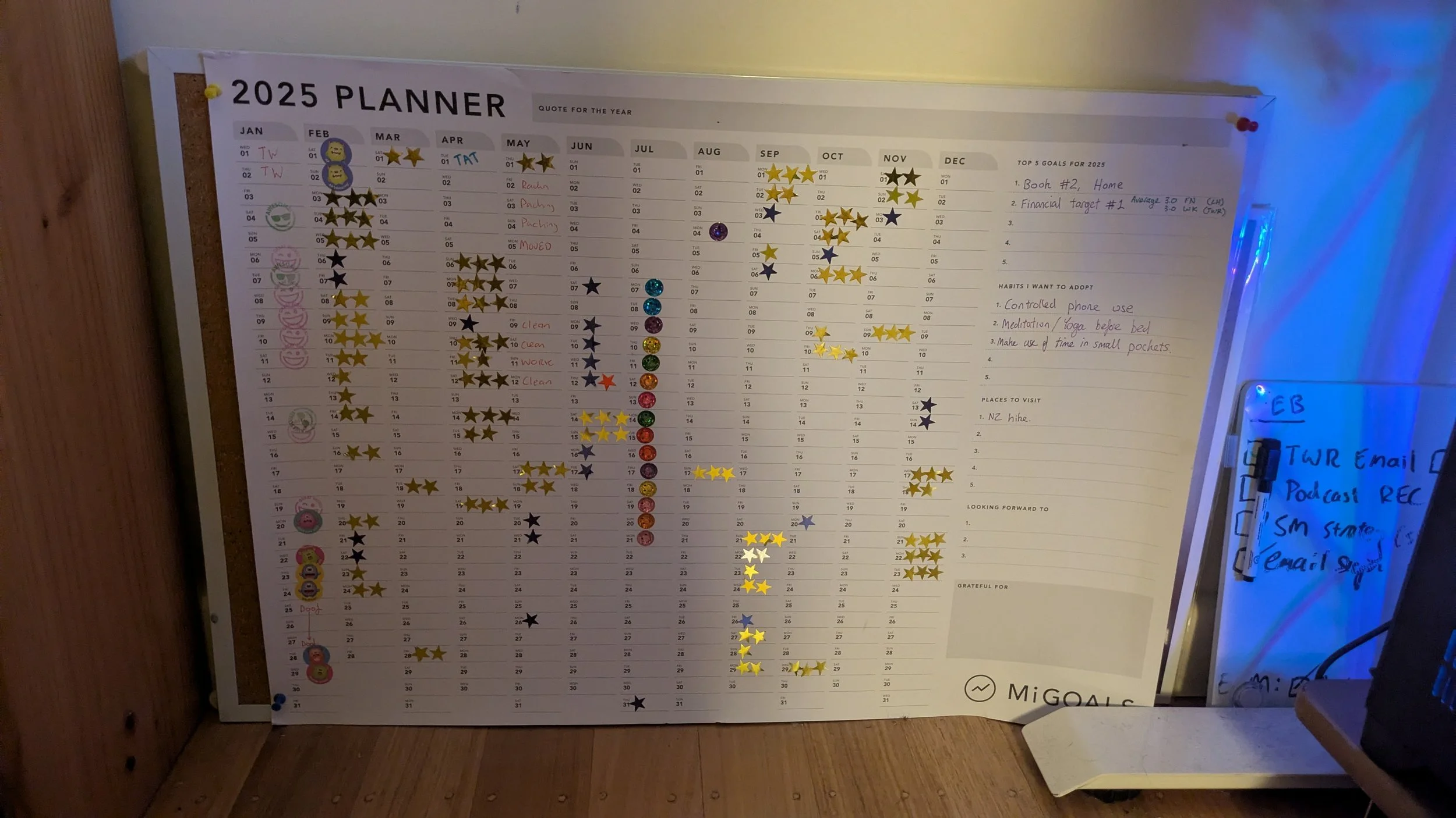 Gamify life! I grew up playing computer games and still do. I love the gym and that feeling of hitting targets. If your brain is wired this way, take advantage of it! I often see people using habit cards and other apps to track their streaks. I’ve kept this analog again, and have a wall calendar where I reward myself with stickers.